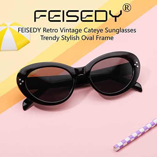 HOT ! FEISEDY Y2k Oval Sunglasses Womens Thick Bold Retro Clout Goggles Round Cateye Shades B2313