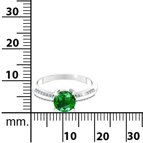 Ring for Womens 925 Sterling Silver Ring Green Emerald Gemstone Ring 7 mm Round Sparkling Fine Ring Jewelry Band Gift for Engagement Wedding, Size 5 6