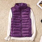 More information about Women's Vest Warm Comfortable Zipper Pocket Fashion Plain Street Going out Casual Daily Weekend Zipper Regular Stand Collar Regular Fit Sleeveless Outerwear White Red Purple Fall Winter