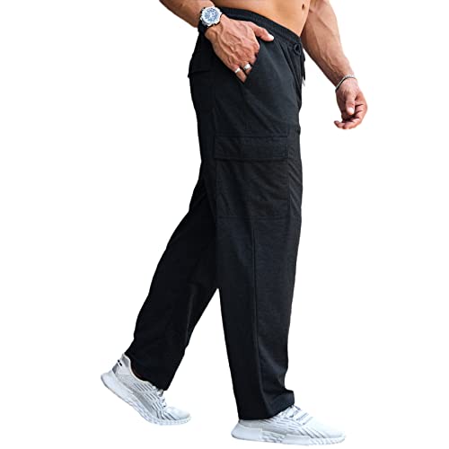 CTU Mens Fashion Baggy Sweatpants Lightweight Workout Cargo Sweatpants Athletic Pants Open Bottom Joggers with Pockets 6
