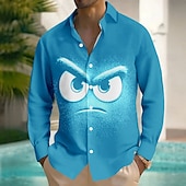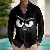Men's Cartoon Funny Smile Face Shirt Button Up Shirt Long Sleeve Fashion Casual Outdoor Daily Streetwear Spring Fall Turndown 3D Print Front One Pocket Linen Like Shirt Black Blue Purple Orange 10