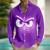 Men's Cartoon Funny Smile Face Shirt Button Up Shirt Long Sleeve Fashion Casual Outdoor Daily Streetwear Spring Fall Turndown 3D Print Front One Pocket Linen Like Shirt Black Blue Purple Orange 6