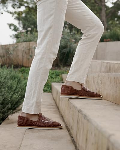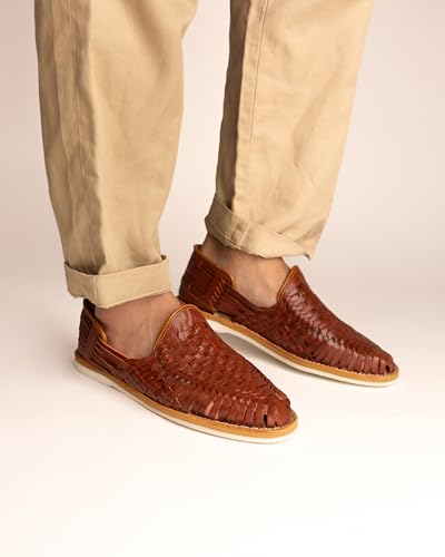 Mexico en la Piel Men's Handmade Leather Huaraches Slip-On Sandals – Genuine Woven Leather, Comfortable & Breathable Casual Shoes – Tan & Shedron 6