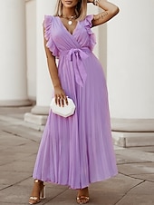 More information about Women's Maxi Dress Cocktail Dress Wedding Guest Dress Chiffon Dress Stylish Basic Casual Vacation Daily Regular Fit Plain Sleeveless V Neck White Purple Summer