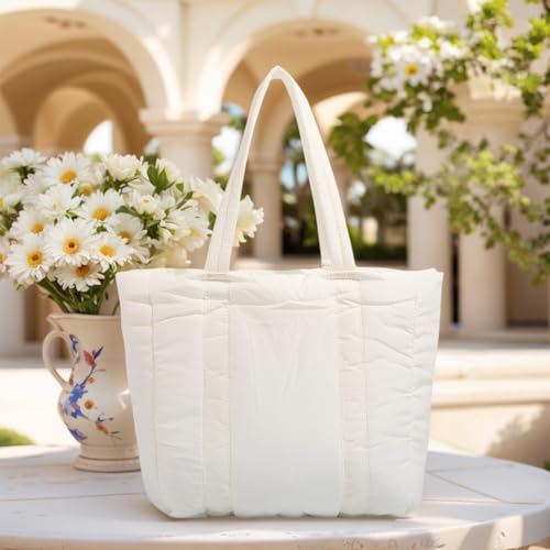 Origin: ImportedPolyester Construction: Enjoy a puffer tote bag expertly made from strong, high-quality polyester, delivering both comfort and assurance during daily use. The sturdy material protects your belongings and keeps the bag looking new.Large Yet Lightweight Design: Sized at 16.14x13.39x2.36 inches, this shoulder bag provides enough room for your mobile, headphones, cosmetics, and purse. Its lightweight feel and spacious interior make organizing simple for travel or work.Modern Functional Appeal: Featuring a casual yet elegant look, this spacious handbag seamlessly pairs with various outfits. The blend of softness and structure creates a fashionable accessory that excels in function and style.Everyday Versatility: Adaptable as an underarm bag for errands, meetups, trips, or the workplace, it functions as a trusted work bag while complementing diverse settings. Switch easily between leisure and business with this convenient bag.Thoughtful Gift Choice: Make holidays special by gifting this practical and timeless puffer tote bag to loved ones. Suitable for Mother's Day, Women's Day, Valentine's Day, birthdays, or Christmas, it expresses your gratitude and affection beautifully. Perfect for everyday use. supreme materials and excellent craftsmanship ensure long-lasting durability.