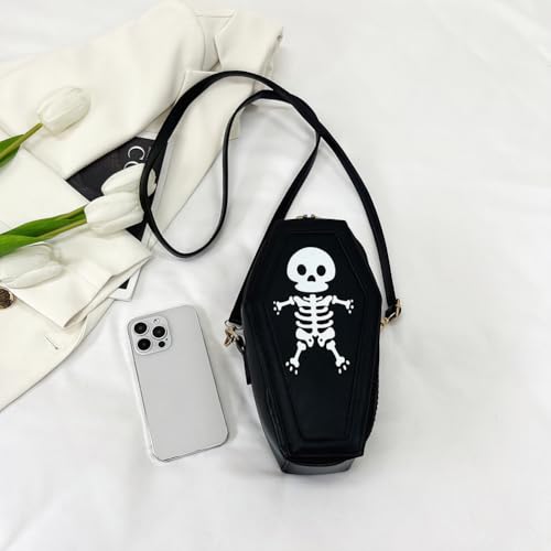 HOT ! Crossbody Bag PU Leather Coffin Shape Halloween Bag Women Skull Print Handbag Hobo Bag for Carnival Cosplay