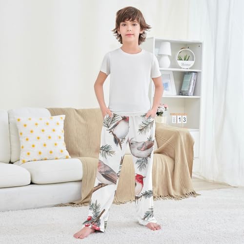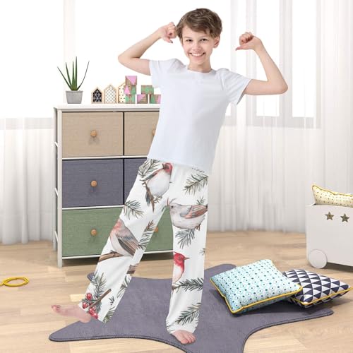 Winter Birds Berry Boys Long Pants Soft Trousers Elastic Waist Kids Lounge Bottoms with Pockets S-XL 6
