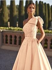More information about A-Line Evening Gown Elegant Dress Formal Wedding Floor Length Sleeveless One Shoulder Satin with Glitter Bow(s) Beading