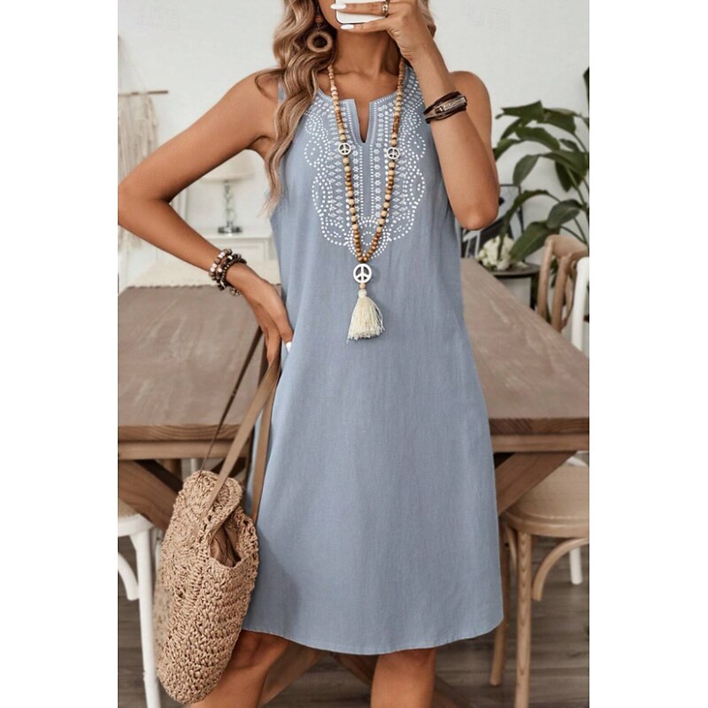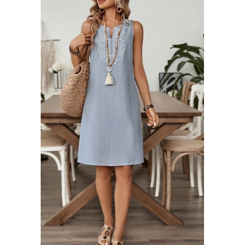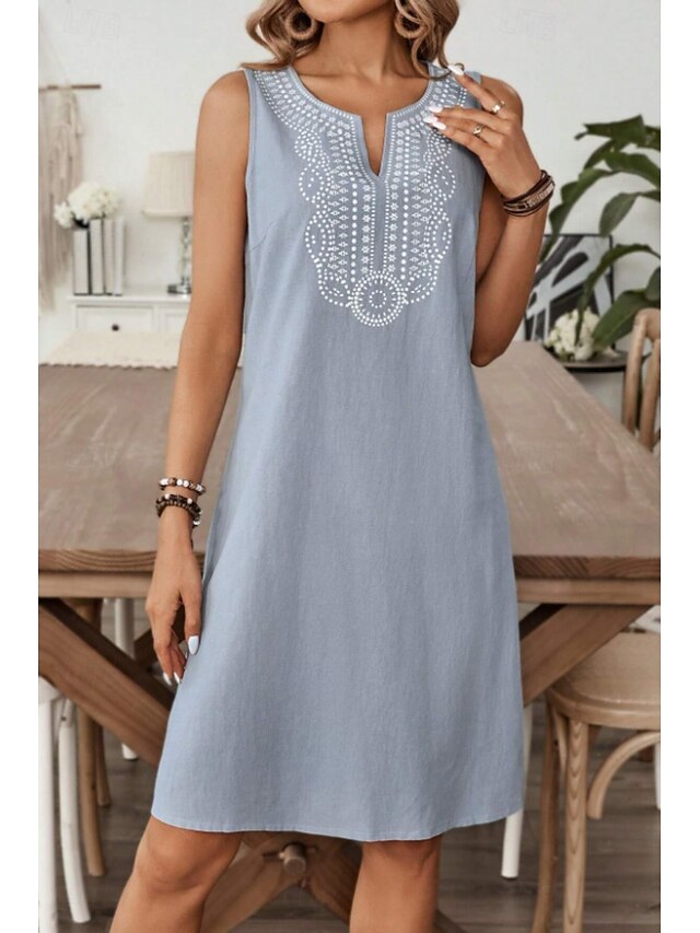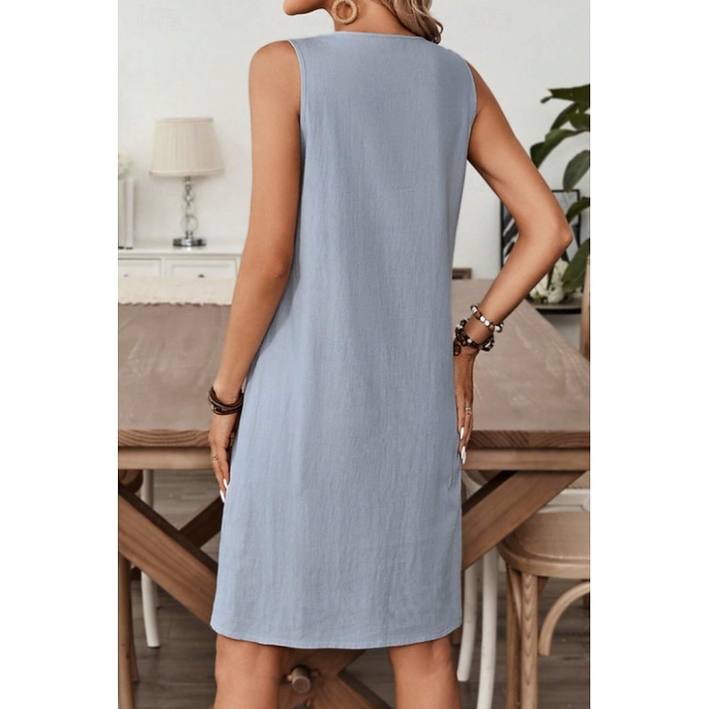 More information about Women's Mini Dress Cotton Linen Dress Fashion fresh-age Holiday Going out Weekend Regular Fit Flower Sleeveless V Neck Light Grey Summer