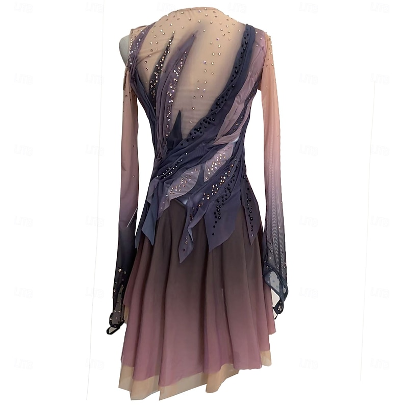 More information about Figure Skating Dress Women's Girls' Ice Skating Dress Coffee Thumbhole Halo Dyeing High Elasticity Professional Competition Skating Wear Thermal Warm Crystal / Rhinestone Long Sleeve Ice Skating