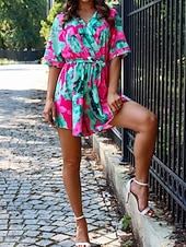 More information about Women's Normal Romper Holiday Floral Half Sleeve V Neck Lace up Print Street Daily Regular Fit Blue Green Summer