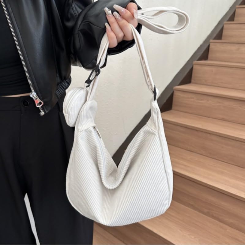 HOT ! Shoulder Bag for Women, Soft Corduroy Crossbody Bag with Adjustable Strap and Detachable Small Pouch
