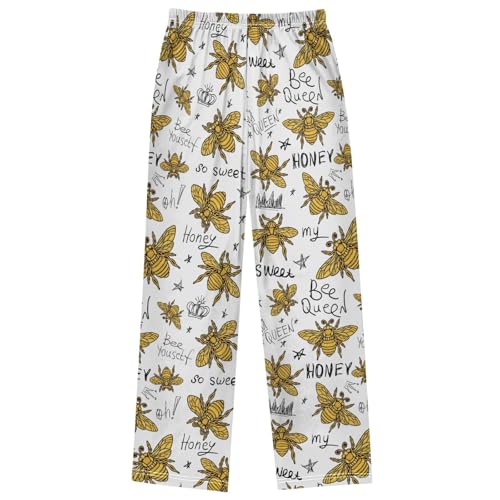 Boy's Pants Gold Embroidery Queen Bee Crown Jogger Pants Elastic Long Bottoms Trousers with Pockets 6-14 Years 6