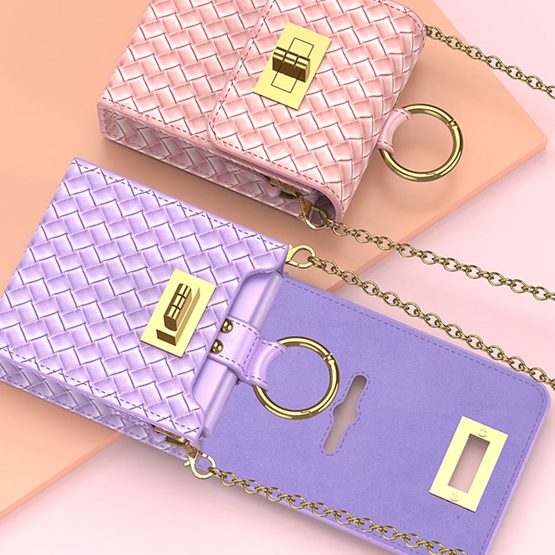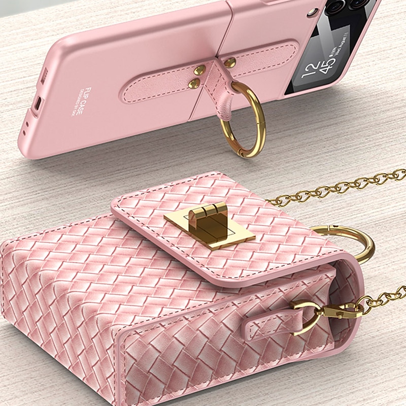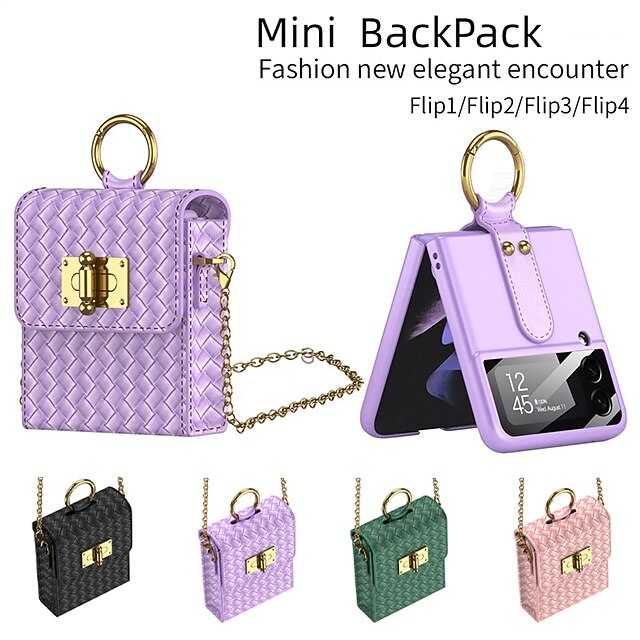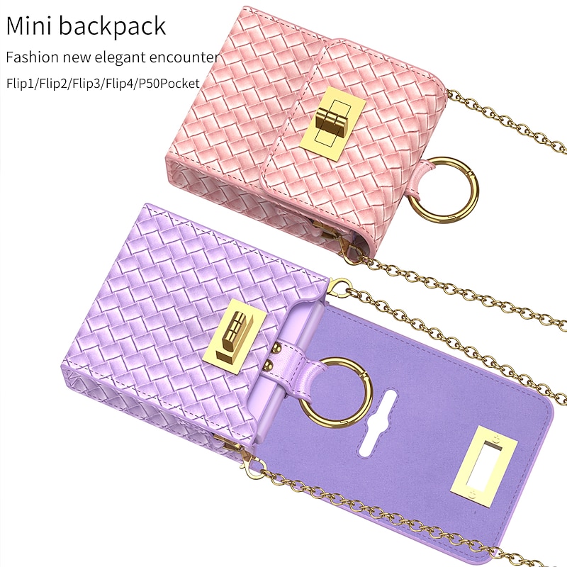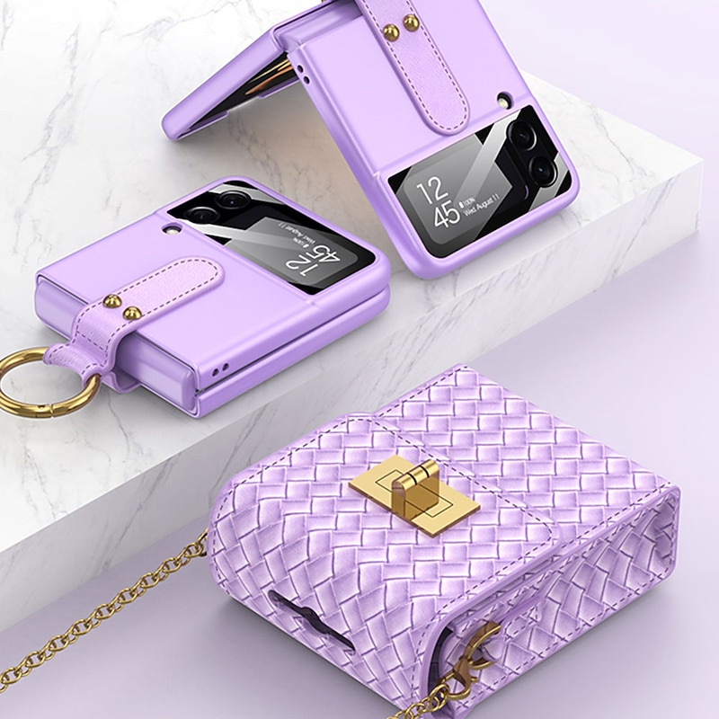 HOT ! Phone Case For Samsung Galaxy Z Flip 4/3/2 Back Cover Dustproof with Removable Cross Body Strap Shockproof Solid Colored TPU PU Leather(Only Bag)