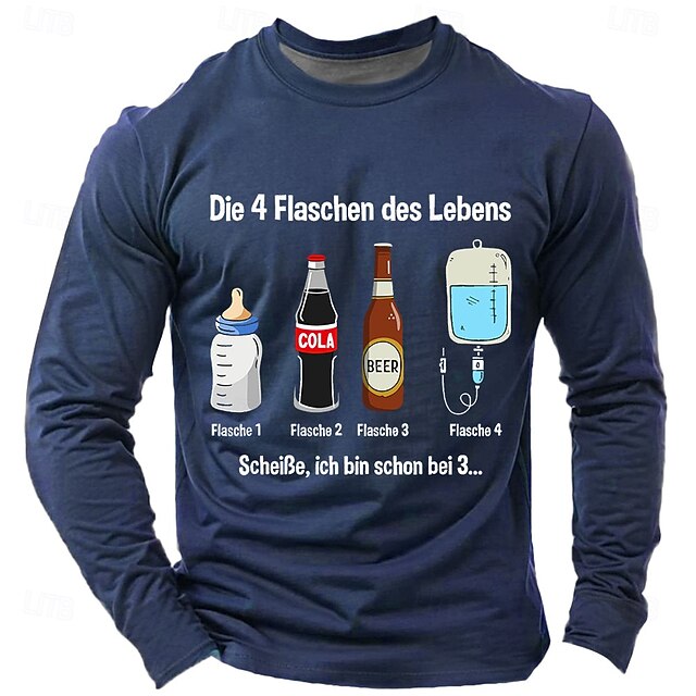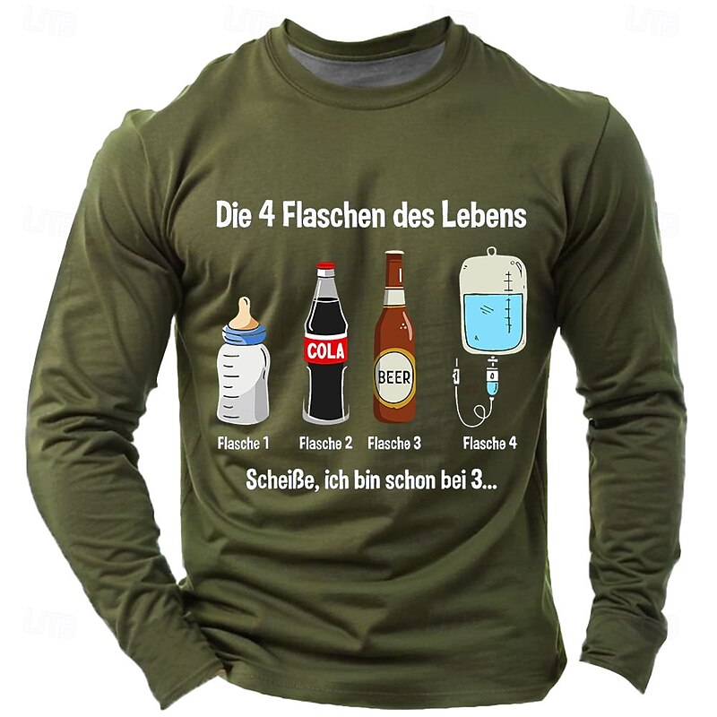 Funny Men's Long Sleeve T-Shirt "The 4 Bottles of Life" Beer & Aging Humor, "Already at 3" Graphic Tee 9