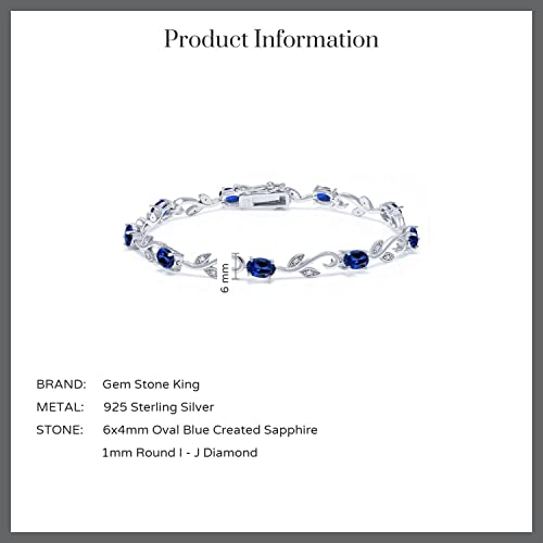 More information about Gem Stone King 925 Sterling Silver Created Sapphire and Diamond Greek Vine Tennis Bracelet For Women (9.13 Cttw, Oval 6X4MM, 7 Inch)