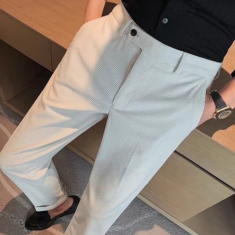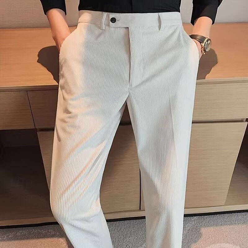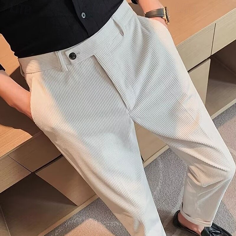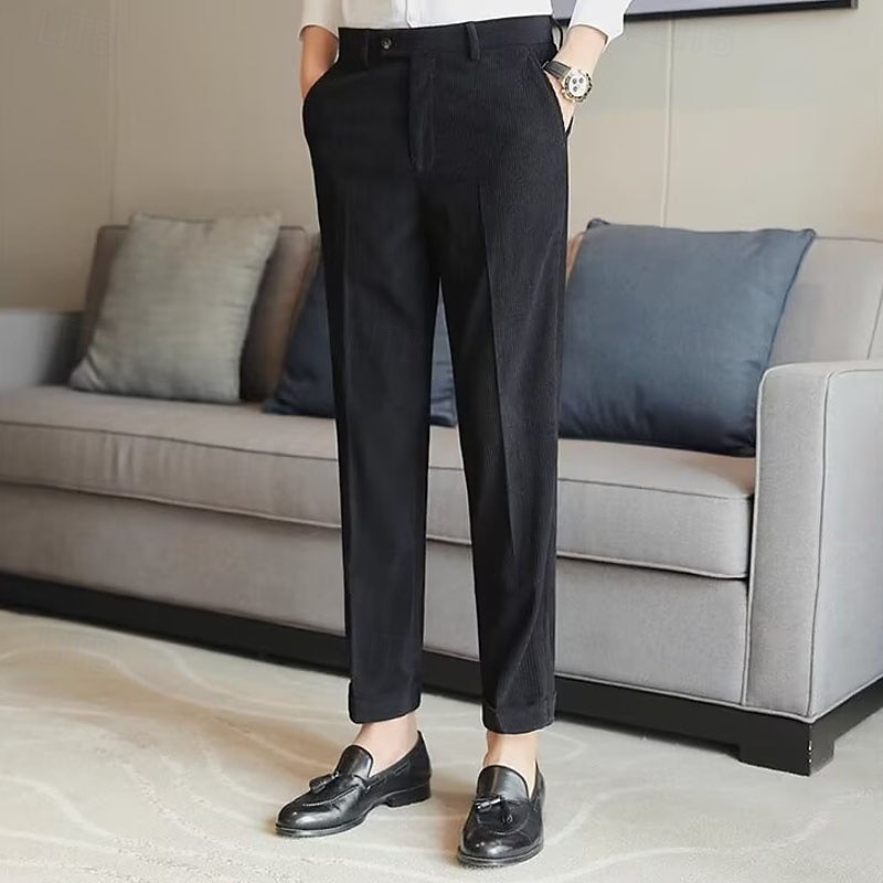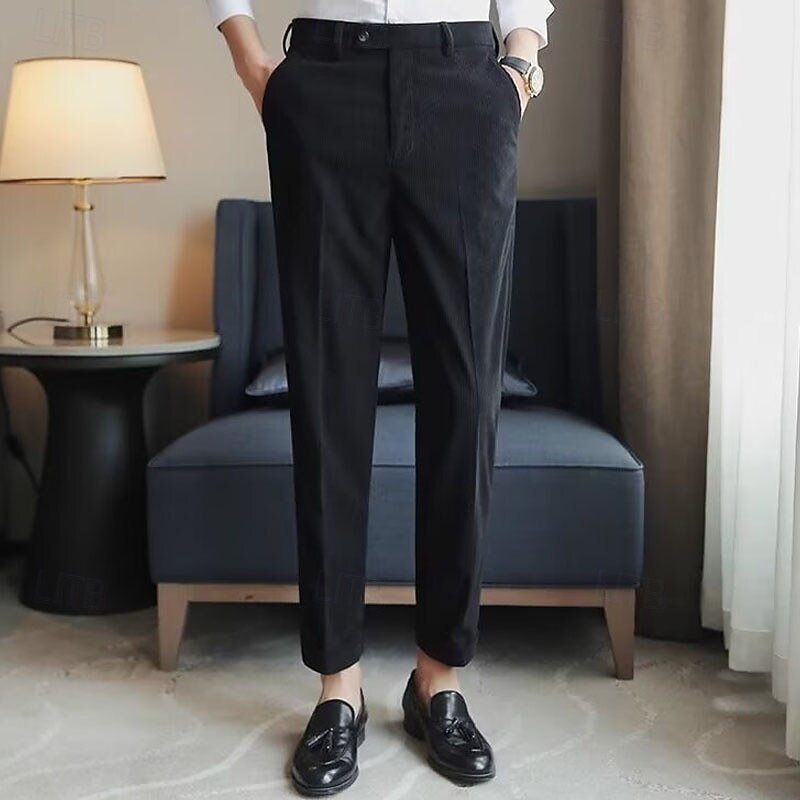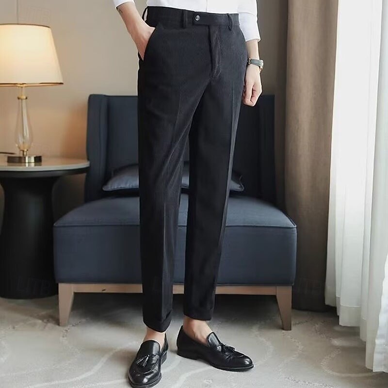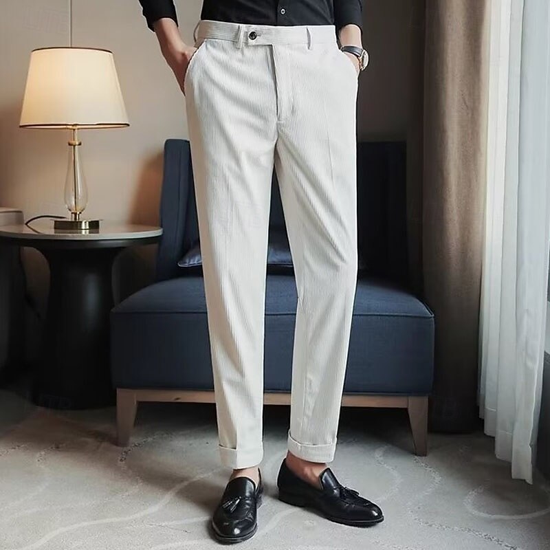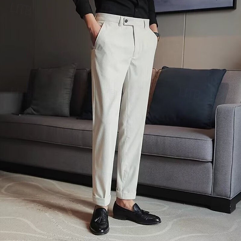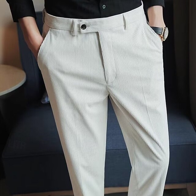 More information about Men's Graduation Dress Pants Corduroy Pants Naples Trousers Trousers Buttons Pocket Solid Color Comfort Formal Party Work Fashion Classic Style Black Beige Micro-elastic