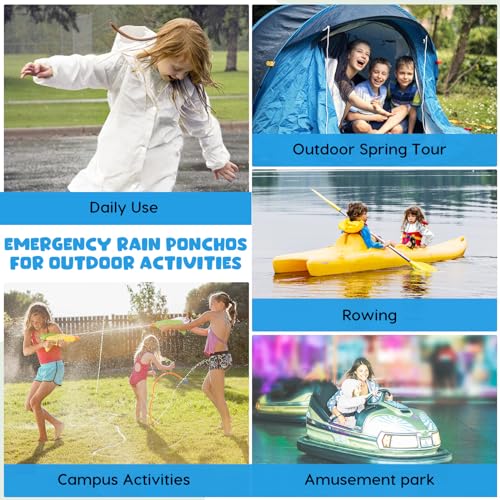 • Perfect It Most: 2 Colors Blue White,suitable height: 3.6-5.25 feet, usually fit for 6-12 years old children, Unisex waterproof ponchos, one size fits most, perfect for boys and girls.Full-length reusable raincoat with hood and elasticated sleeves to keep water out