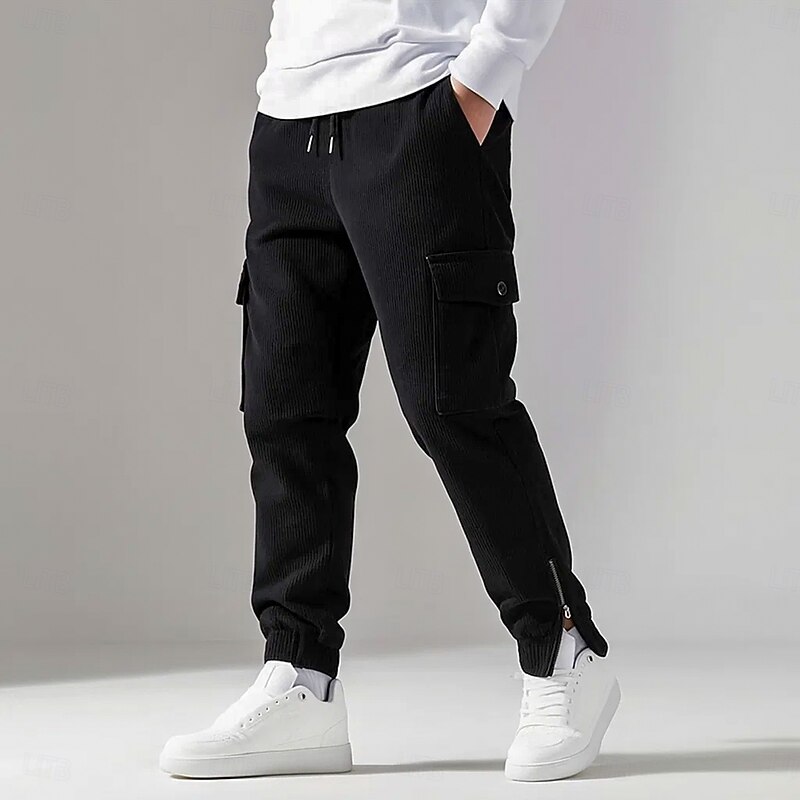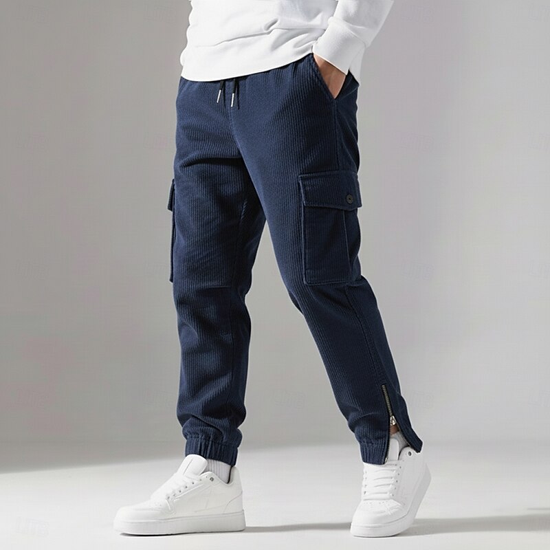 HOT ! Men's Cargo Pants Trousers Corduroy Pants Slacks Baggy Pants Drawstring Front Pocket Plain Comfort Full Length Outdoor Home Party Vacation Fashion Black Navy Blue Micro-elastic