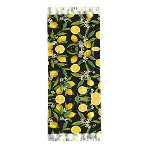 Yellow Lemon Print Women'S Super Soft Classic Winter Fringed Scarf For Spring Fall Winter Warm Long Scarve 5