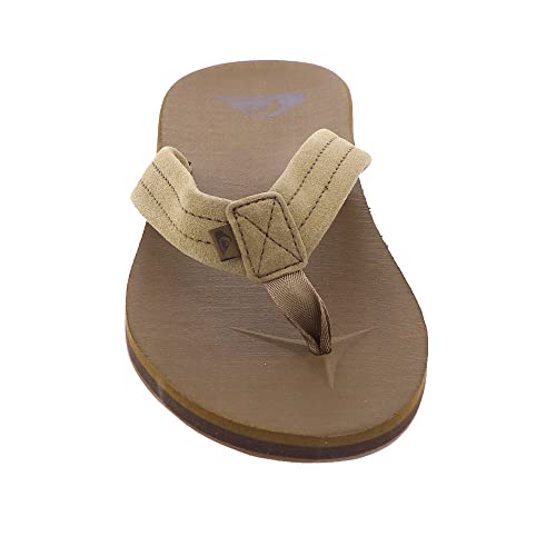 Origin: Made in the USA or ImportedSole material: RubberOuter material: SuedeClosure type: Slip OnFlip flop sandal from QuiksilverSoft suede leather upper with contrast stitchingFinely woven nylon toe post with herringbone textureSlip-on fitCompression molded textured footbed Perfect for everyday use. top-grade materials and excellent craftsmanship ensure long-lasting durability.