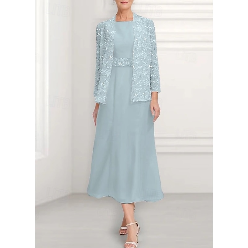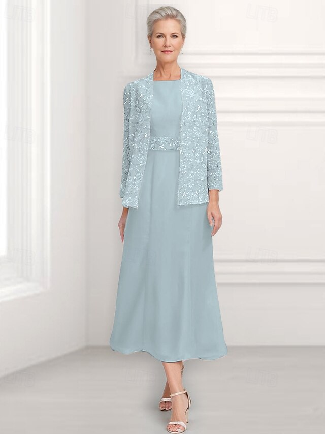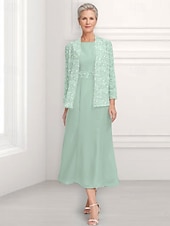 More information about A-Line Dress Mother of the Bride Dress Wedding Guest Church Elegant Vintage Jewel Neck Ankle Length Chiffon Long Sleeve with Sequin Embroidery