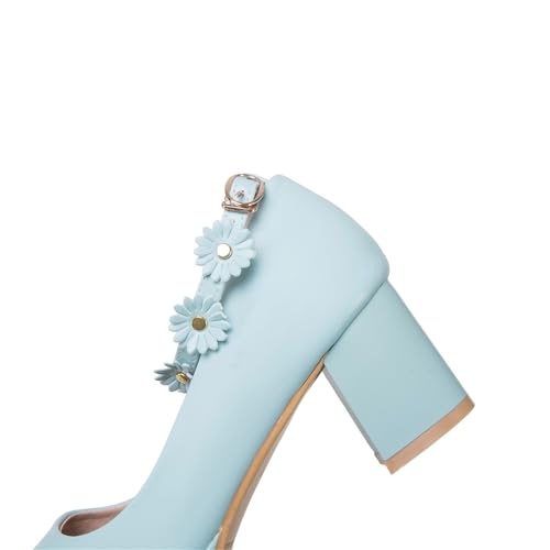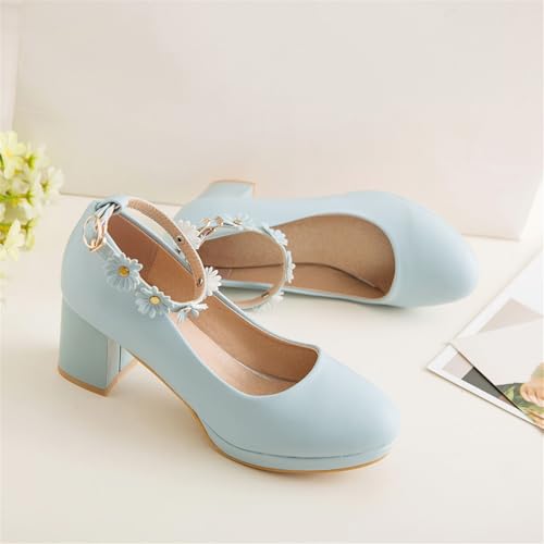 Women’s Cute Platform Ankle Strap Pumps Lolita Princess Round Closed Toe Mid Heels Chunky Buckle Flower Wedding Party Dress Fashion Comfortable Block Heeled Girls Shoes 6