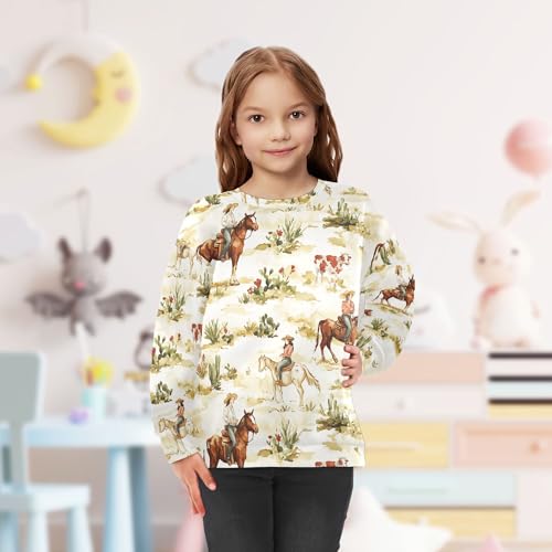 JUNZAN Western Cowgirl Wilderness Kids Girls Hooded Sweatshirt Crewneck Sweatshirt With Hoodie Camping 4T 5
