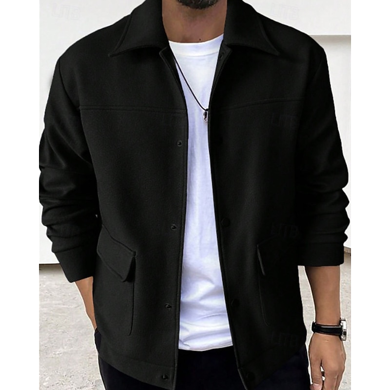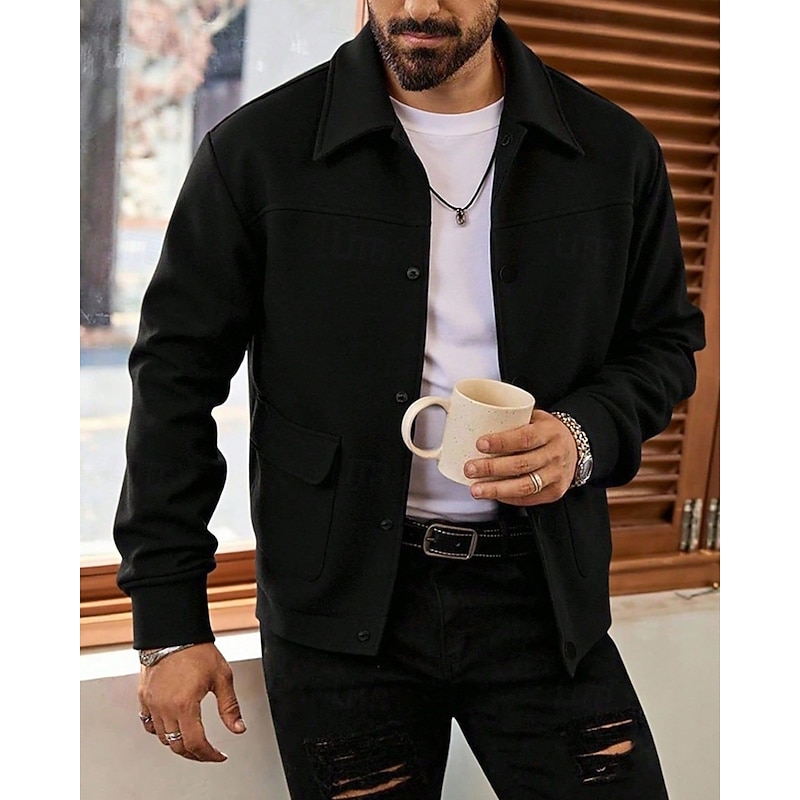 More information about Men's Lightweight Jacket Casual Jacket Vacation Daily Breathable Pocket Fall Winter Plain Fashion Classic Lapel Regular Apricot Black Jacket