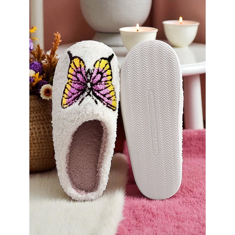 Women's Butterfly Fuzzy Slippers – Soft Indoor Winter House Shoes for Bedroom, Living Room and Self-Care Moments 1