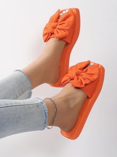 GORGLITTER Women's Cute Bow Flat Sandals Square Open Toe Slide Sandals Wide Width Sandals Dressy Beach 2025 5