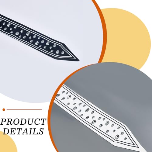 2Pcs 2 Colors Black White Skull Scarf Fashion Skeleton Pattern Neck Tie Neckerchief Versatile Handbag Handle Wrist Wrap Cover Skinny Soft Silk Headband Hair Head Scarves for Women Accessory 5