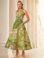 $129.99 - Floral A-Line Cocktail Elegant Dress Formal Wedding Wedding Ankle Length Sleeveless V Neck Nylon with Pocket 2025. Shop for cheap Cocktail Dresses online? Buy at lightinthebox.com on sale today!