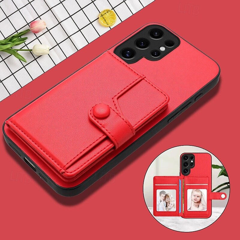 More information about Phone Case For Samsung Galaxy S25 S24 S24 FE S23 Ultra Plus S22 Plus Ultra A55 5G A35 5G A25 A15 A14 Back Cover with Stand Holder Card Slot Shockproof Retro TPU PU Leather
