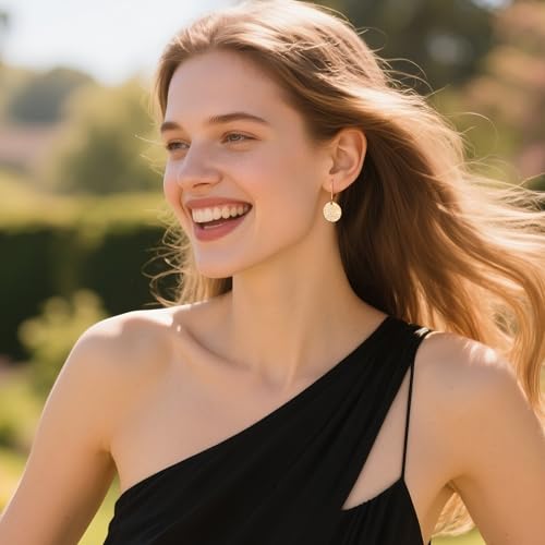 • HYPOALLERGENIC GOLD EARRINGS FOR WOMEN: The gold dangle earrings leverback is made of 925 sterling silver, the earrings main body is disc coin shape, covered with a 14k gold plating, no more red itchy earlobes after wearing earrings, hypoallergenic and safety, making it suitable even for women with sensitive skin.