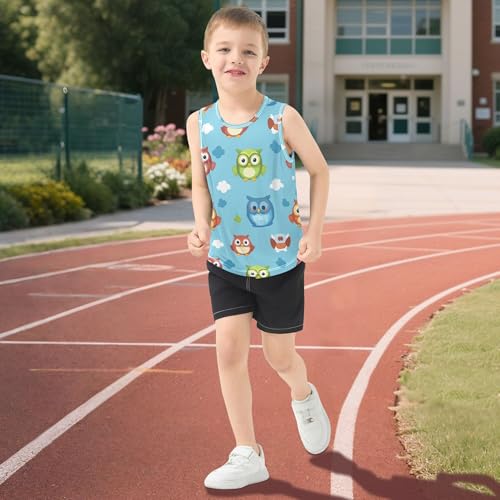 JUNZAN Cute Cartoon Owls Blue Boys Tank Top Sleeveless Kids Vest Sports Clothes for Beach Boating Travel Sports 3T 4