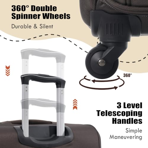 Softside Expandable 3 Piece Luggage Set with Duffel Bag Upright Spinner Lightweight Travel Suitcase Softshell Luggage Sets for Trips (Brown + Polyester) 7