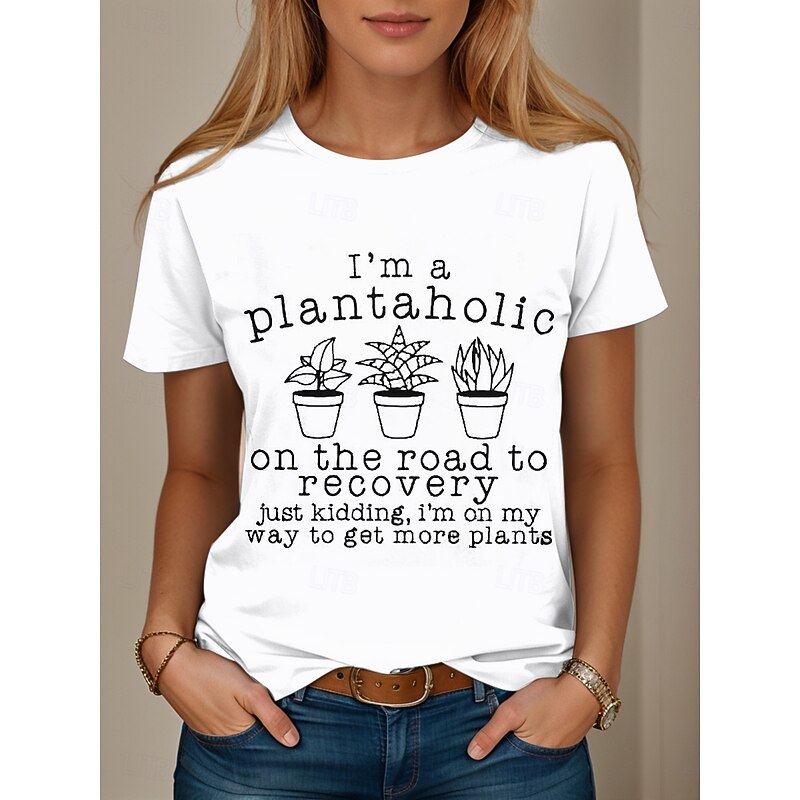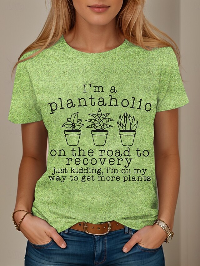 More information about Women's T Shirt Graphic Letter Stylish Casual Short Sleeve Round Neck Regular Tops Daily Weekend Print Black White Pink Blue Green Summer Spring