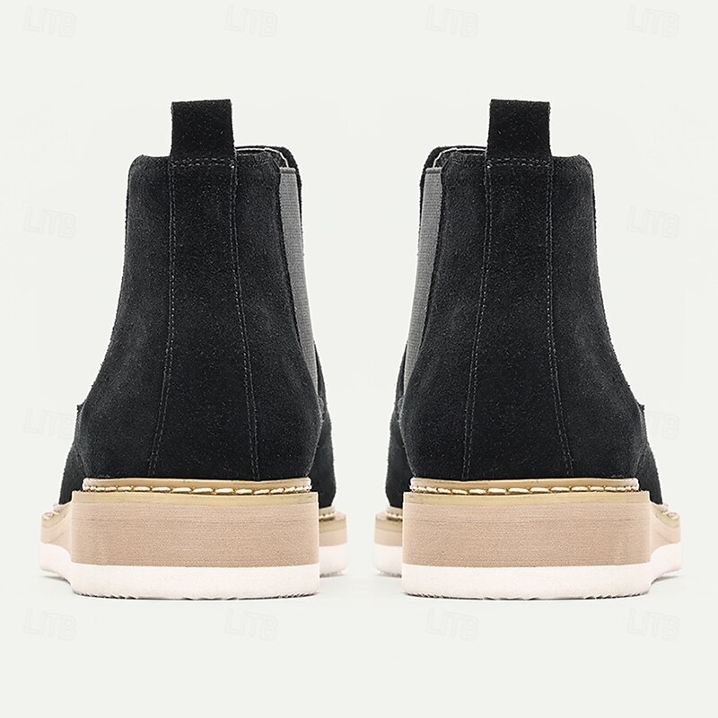 Highlights [Fabric] Crafted from Italian full-grain cowhide leather, these Chelsea boots for men ensure a luxurious and durable wear. The rich black exterior is sanded to perfection, offering both a sophisticated look and a smooth finish. [Fit] Featuring a classic slip-on design with elastic side panels, these boots offer comfort and ease of wear. They are designed with a round toe shape that provides ample room and an elegant silhouette for a relaxed fit. [Design Highlights] The standout design element of these boots is the contrasting beige rubber sole, which not only adds a touch of modern sophistication but also ensures excellent grip and durability. The seamless integration of the sole with the premium leather upper showcases superior craftsmanship. [Occasions] Ideal for both casual outings and semi-formal events, these Chelsea boots effortlessly elevate any ensemble. Whether heading to a business meeting or enjoying a weekend brunch, they serve as a versatile addition to any wardrobe. [Size Notice] Available in a wide range of sizes from US6/EU39/UK5 to US13/EU46/UK12, these boots accommodate various foot sizes, ensuring that every gentleman can find the perfect fit for both comfort and style.