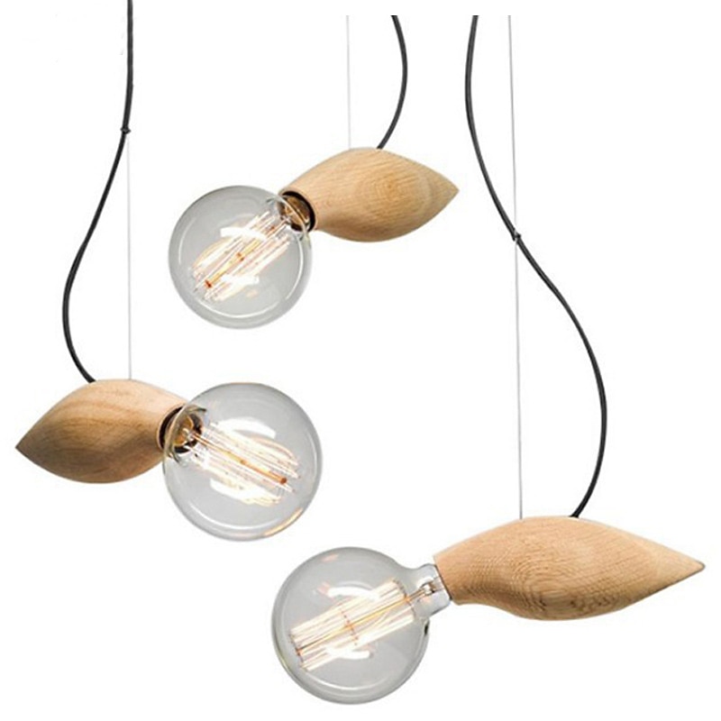 LED Chandelier, Creative E27 Wooden Ceiling Hanging Lamp Restaurant Lighting Hanging Light Art Bar Cafe Restaurant Solid Wood Pendant Lights 110-240V 3