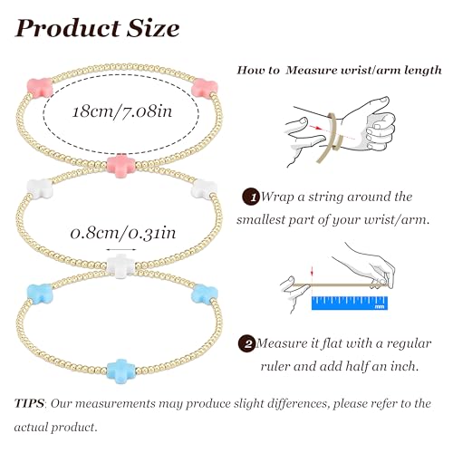 choice of all Gold Bracelets for Women Trendy Beaded Bracelet Non Tarnish Stack Cross Pearl Beaded Stretch Bracelets Jewelry Gifts for Women 3