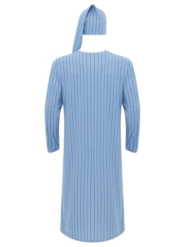 Men's Striped Loose Sleepwear Long Sleeve Nightshirt Night Pajama Set with Sleeping Cap 7