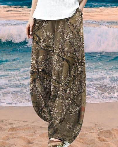 More information about Ocean Print Cargo Pants for Women Cotton Linen Japanese Baggy Trouser Casual Boho Oil Painting Pants Wide Leg
