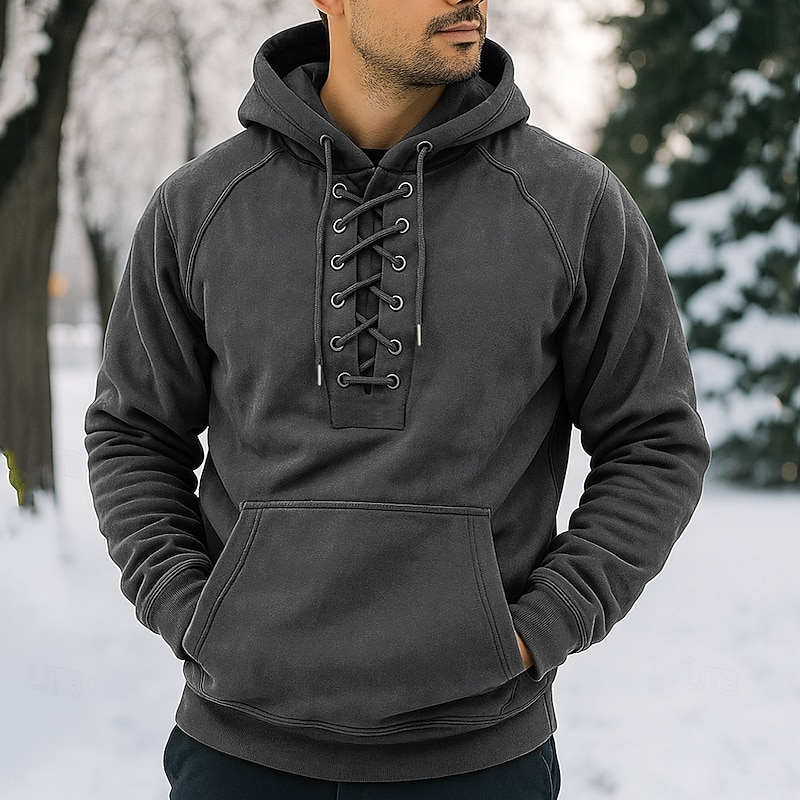 More information about Men's Hoodie Black Army Green Gray Hooded Plain Drawstring Front Pocket Sports & Outdoor Daily Holiday Streetwear Basic Casual Winter Spring & Fall Clothing Apparel Hoodies Sweatshirts