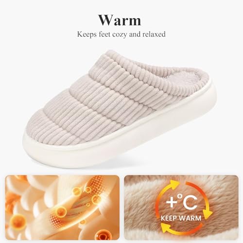 NineCiFun Womens House Shoes Warm Memory Foam Slippers for Women Indoor Soft Fleece Lined Womens Slippers Beige,13-14 4