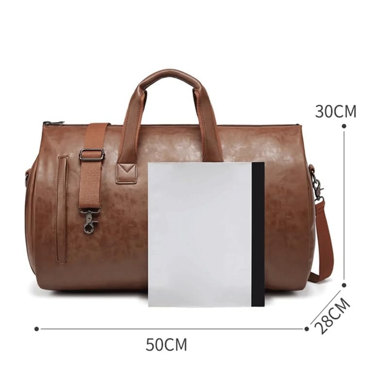 • The leather travel duffel bag has a zippered pocket on the front, which can conveniently store mobile phones, passports, wallets, and other items. There is a luggage bar slot on the back to easily fix the travel bag on the luggage rod, which is more relaxed.