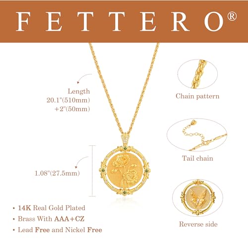 More information about Fettero Gold Necklace for Women Birth Flower Necklace with Birthstone 14K Gold Plated Dainty Rotating Coin Pendant Necklace Personalized Birth Month Jewelry for Birthday Mother's Day Gift 12 Month