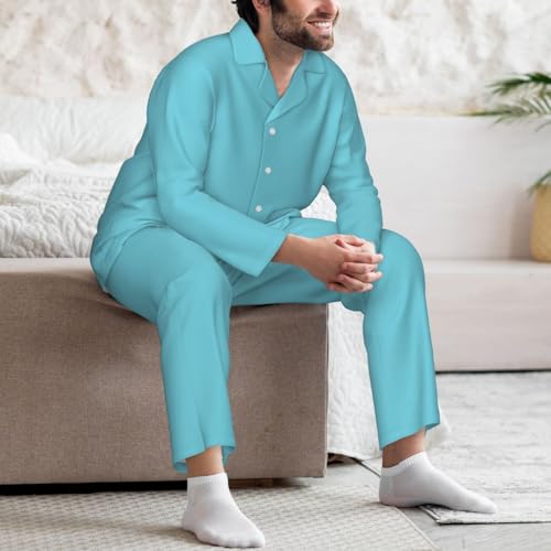 HOT ! Mens Pajamas Set Sky Blue Button Down Pajamas Sets For Men Long Sleeve Lounge Pj 2 Piece