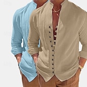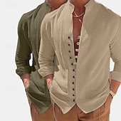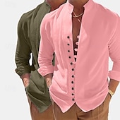 More information about Men's Shirt Linen Shirt Summer Shirt Casual Shirt Button Up Shirt Plain Vacation Curise Green+pink Green+Khaki Blue+Khaki Khaki+Orange Long Sleeve Band Collar Summer Spring & Fall Clothing Apparel
