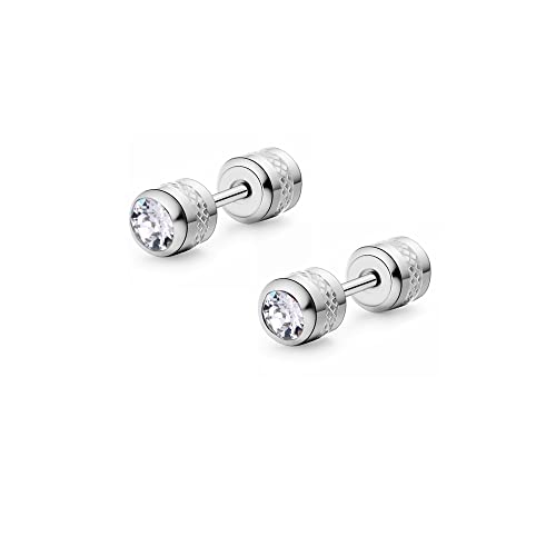 • MULTI-PURPOSE SMALL HOOP EARRINGS:This new and fashionable Double Sided diamond dumbbell earring in high polished finish is design for daily wear, it not only can be used as Piercing Cartilage Stud Earrings,Conch Piercing,cliker nose rings and nipple rings etc.These feel some bling Double-Round Cubic Zirconia Screw Safety Secure Back Earrings are lightweight and have not hurt ears.